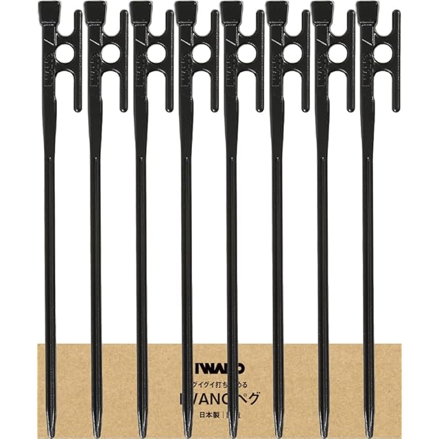 IWANO(イワノ) 鍛造ペグ 【 IWANOペグ 30cm 8本セット 】 日本製 / 鍛造 / 独自のツメ / カチオン電着塗装 / ワイドヘッド / 支柱側面の2面の溝で固定力アップ / 打ち込み引き抜き簡単 / 野営 / 登山 / キャンプ / レジャー / 山岳 / 砂地 / 河原 / 高品質 / 溶接なし / 日本メーカー / MADE IN JAPAN / (30cm, 8本)