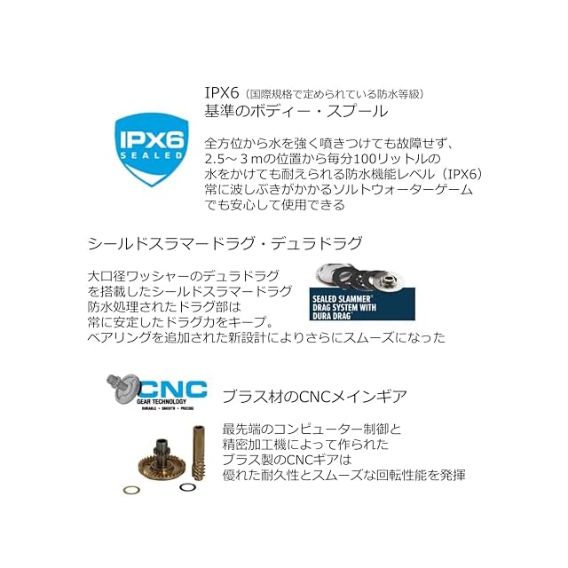 自重(g)869●ギア比4.7●最大ライン巻取(cm)106●最大ドラグ力(Kg)22●ボール/ローラーベアリング8/1●ラインキャパシティナイロン(mm/号)(m) 0.52mm/10号300m ●ラインキャパシティPE(号)(m)8号300m