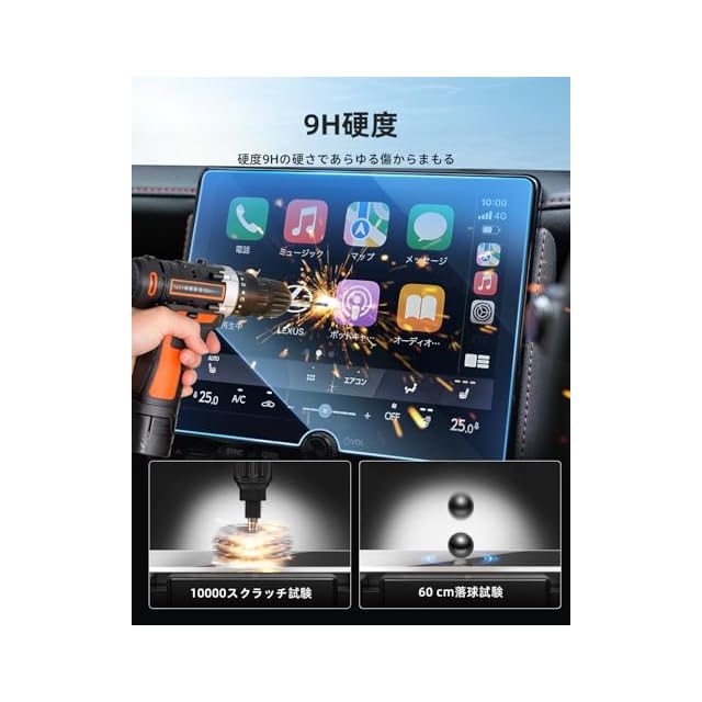 【9H高硬度ガラスフィルム】レクサス lbx 保護フィルムに は9H硬度素材を採用し、ガラスを強化することで外界からの衝撃(鍵や硬いものなど)を吸収し、映像へのダメージを最小限に抑えます。 貼った事で傷が付かない安心感で生まれました。