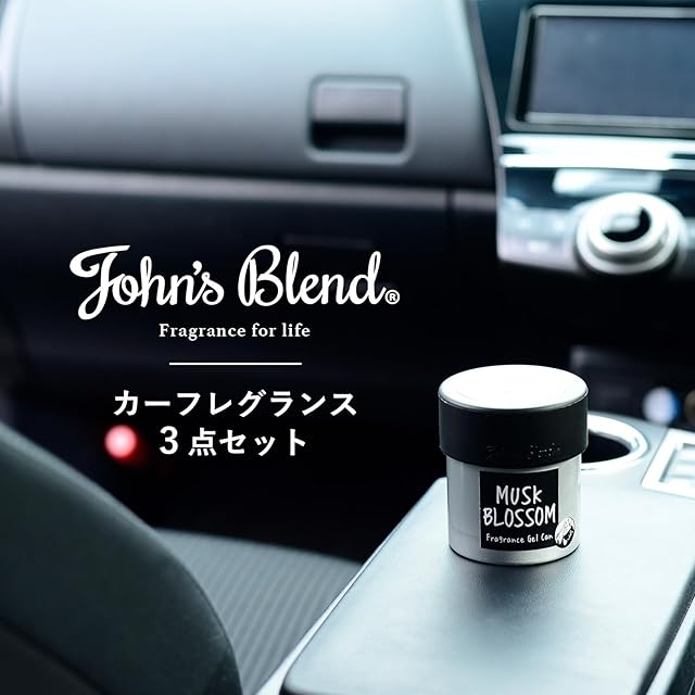 ●「いい香りで日々の暮らしをもっと豊かに」という思いから生まれた John's Blend シリーズ<br>●車の芳香剤、吊り下げ・クリップ・ジェルカンをまとめたカーフレグランスセット。車内をホワイトムスクの心地よい香りで満たします<br>●サボン系の爽やかさとホワイトフローラルのほのかな甘みがクセになるホワイトムスク。どこか懐かしさも感じられる優しい香調は、男女問わずお使いいただけます<br>●芳香持続期間:吊り下げ(約2~4週間)、クリップ(約30日間)、ジェルカン(約4~5週間)