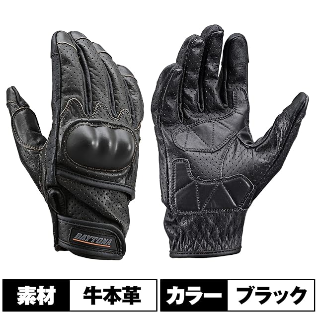 商品名:デイトナ(Daytona) バイク用 グローブ 春夏秋 本革(牛革) ハードプロテクター スマホ対応 カウレザー パンチングメッシュ プロテクターグローブ HBG-130 ブラック Lサイズ 18913