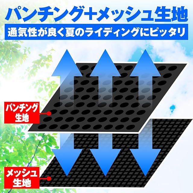 【仕様4】生地にパンチング加工と裏地にメッシュを採用することで、従来品と比べ通気性も向上しました