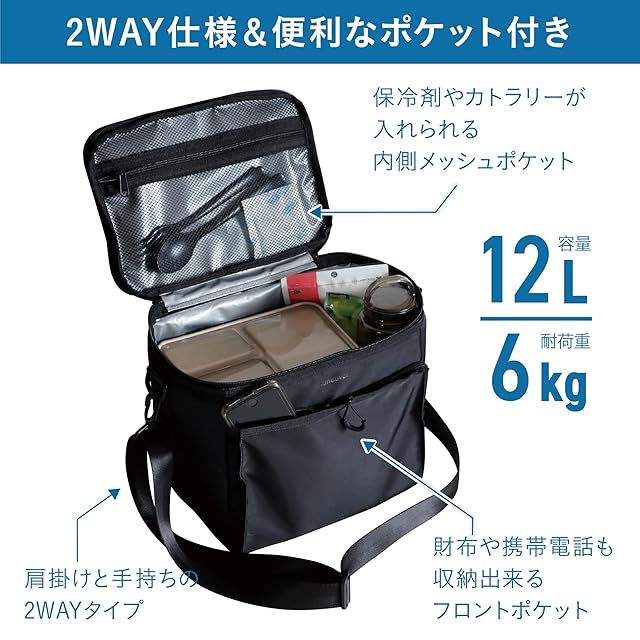 シービージャパン 保冷バッグ ソフトクーラー 大容量12L ブラック 肩掛け/手持ちの2WAYタイプ 内側メッシュポケット付 保冷ボックスバッグ maneuver