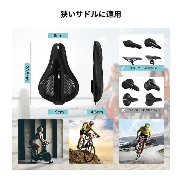 ✅【優れた通気性&滑り止め】サドルクッションカバー中央の凹部には、通気性もよく長時間使用しても蒸れにくく快適な走行が楽しめます。カバーの裏面に滑り止めのゴム粒子が施されて、長距離・長時間走行してもずれにくいです。