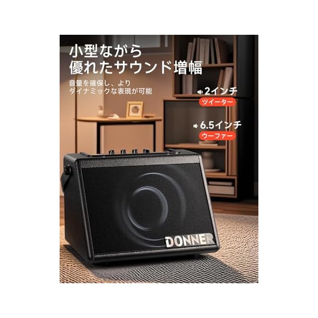 ✨【臨場感が溢れるサウンド】DDA-20ミニアンプの本体には6.5インチの低音スピーカーと2.0インチの高音スピーカーが搭載されています。20Wながら自宅練習はもちろん、レコーディング、ライブ・スペースでも十分耐えうる出力を確保