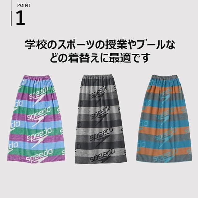 Speedoロゴとカラフルボーダーのデザインで、プールでのワクワク気分が高まります