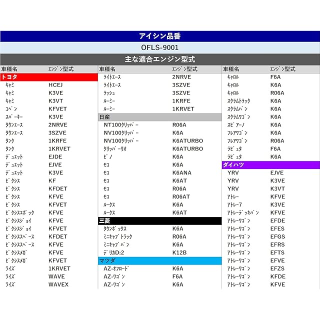 商品タイプ:OFLS-9001 (スズキ、スバル、ダイハツ、トヨタ、マツダ、日産)