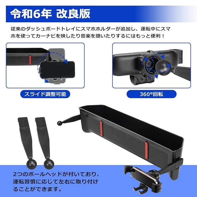 商品名:SUNVIC アルファード ヴェルファイア 40系 ダッシュボードトレイ 360度回転 スマホホルダー付き ナビトレイ アルファード 専用設計 ABS素材 コンソールボックス アルファード カスタム 小物入れ 車内収納 内装 アクセサリー ラバーマット付き 収納ボックス 車載ホルダー付き 3Dトレイ ヴェルファイア 専用グッズ 装着簡単 内装パーツ インテリア(ALPHARD VELLFIRE))