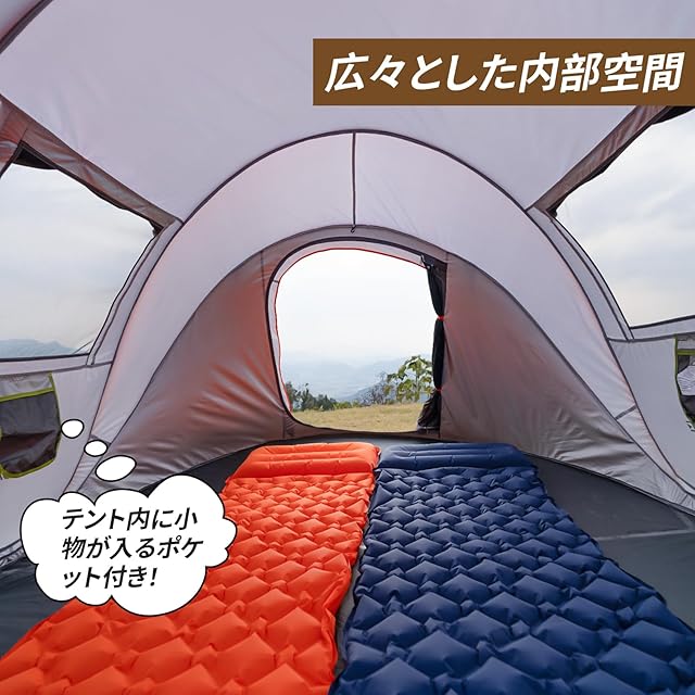 【優れた通気性】 ダブルパネルを備えた窓とドア、メッシュウィンドウ4つ、ドア2つは、虫を寄せ付けないと同時に、交互換気に最適な通気を提供します。 前と後部のドアで着脱が簡単で、内と外のドアをジップアップできます。