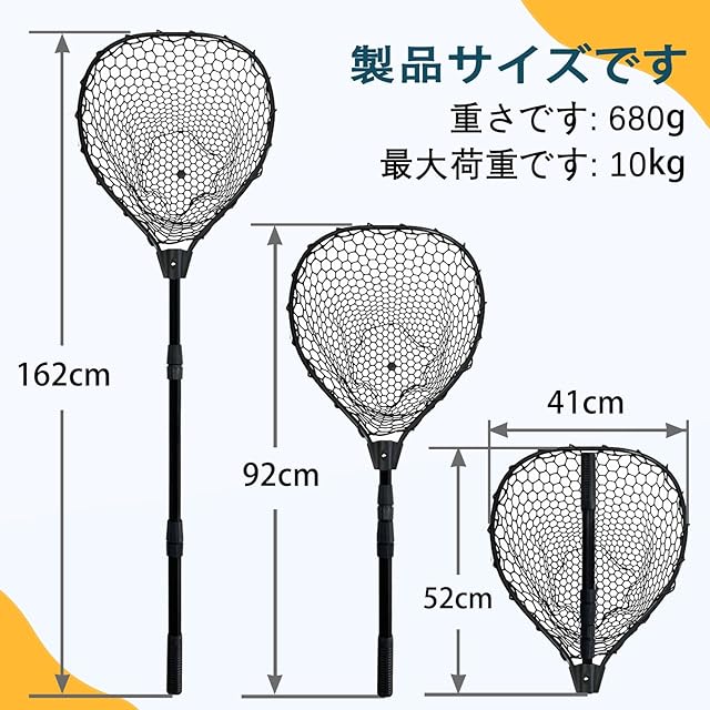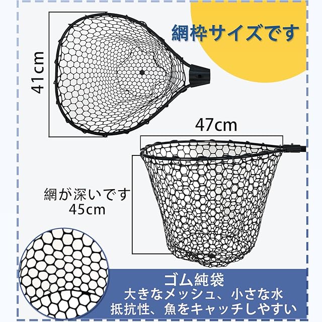 軽量化と高強度の素材:ランディングネットはヘキサネットの軽量化と高強度を兼ね備えたアルミニウム合金を使用しています。この軽量性は長時間の釣行でも疲れ知らずの操作性を実現します。また、高強度の素材により、中大型の魚を安心してキャッチすることが可能です