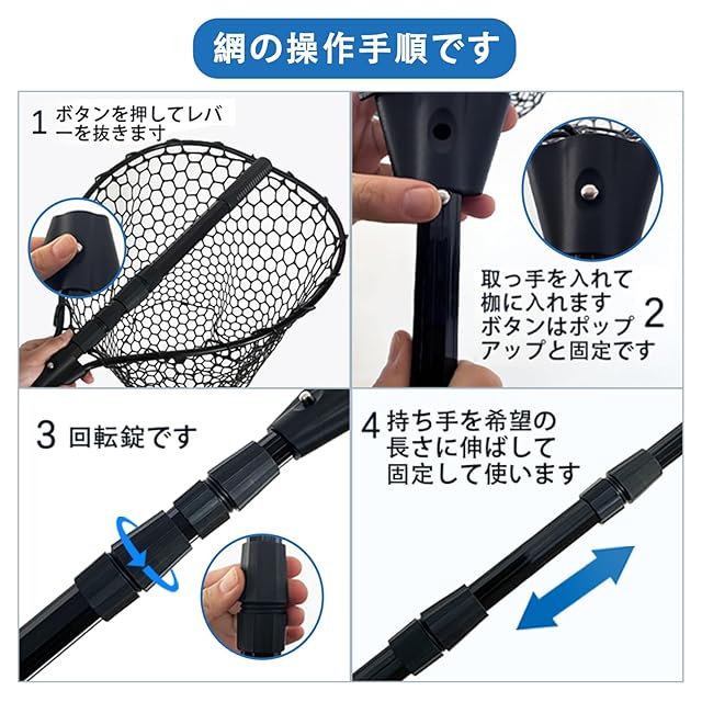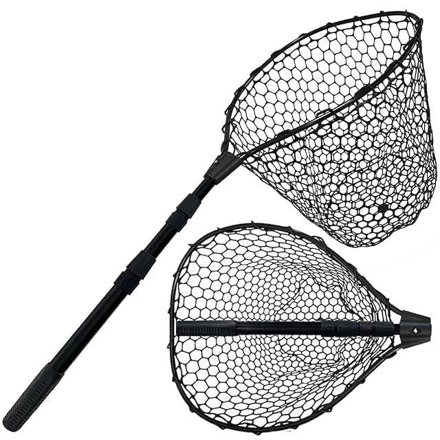 PRO FISHINGランディングネット 伸縮自在なたも網, ラバーネット 渓流・船用釣り用タモ 魚の保護・軽量設計・エコ素材で家族で楽しむ釣り体験に最適!