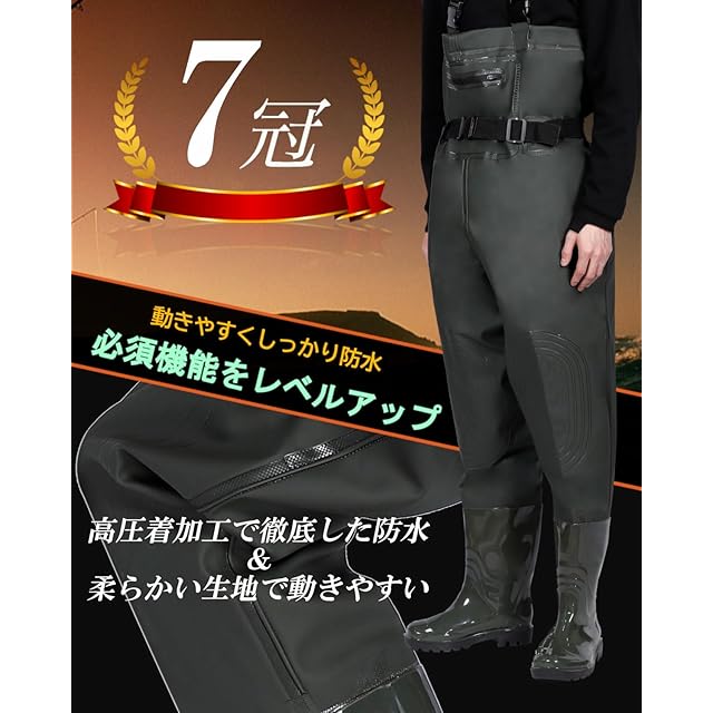 商品名:[unizom] ウェーダー 釣り 胴長 長靴 【ヒザ補強・簡単脱着・動きやすい】 ラジアルソール 完全防水 丈夫 チェストハイ フィッシングウェーダー (26cm~27cm)