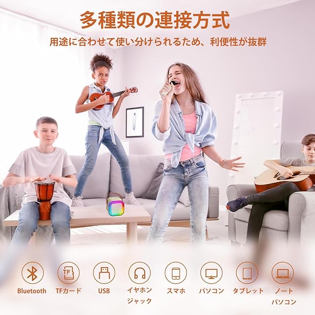 【雰囲気を一層盛り上げる多彩なランプ】ライトショー機能が追加され、4種類の光り効果を変更でき、雰囲気を一層盛り上げることができます。お友達や家族と集まった時に、気兼ねなく好きなだけ歌えるので、一日の疲れもストレスも解消できます。ホームパーティーやカラオケ大会、社内行事、忘年会、新年会、二次会、文化祭、学園祭などにも最適です。