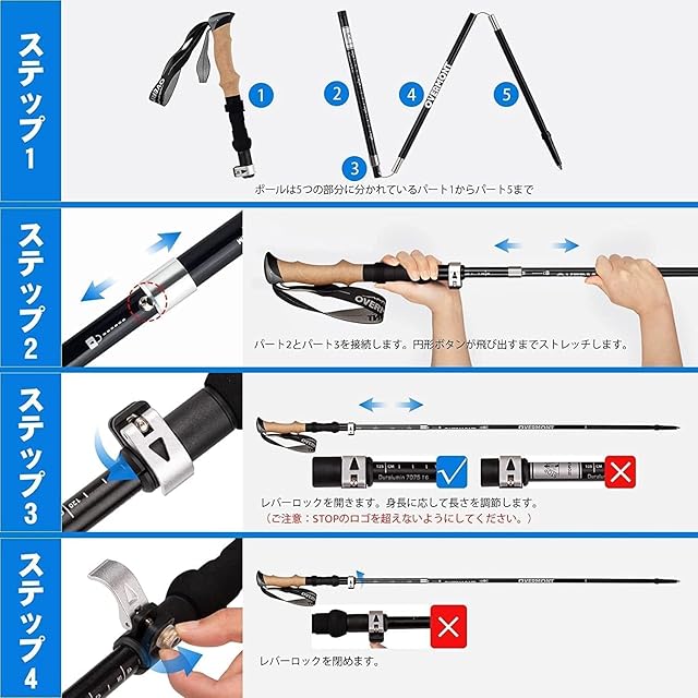 商品名:Overmont トレッキングポール A7075アルミ製 2本セット カーボン 2本セット 超軽量 218g 105-125伸縮 レッキングステッキ 超軽量 登山杖 登山用ストック カーボン ステッキ ウォーキングポール 航空品質ポール