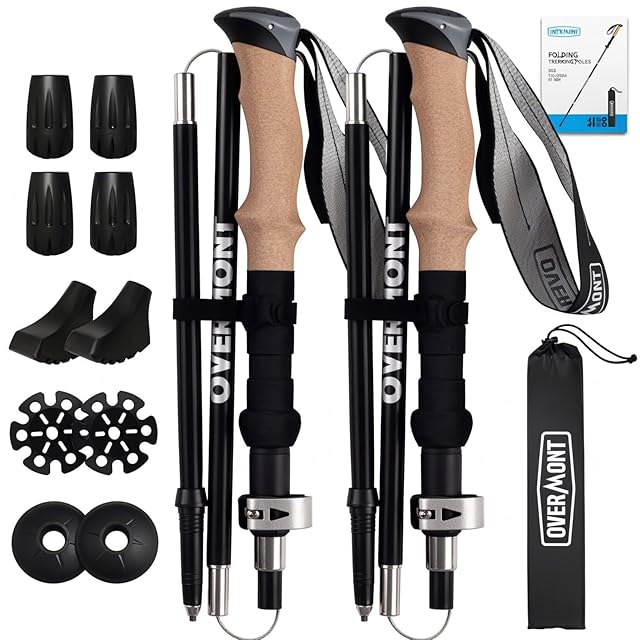 Overmont トレッキングポール A7075アルミ製 2本セット カーボン 2本セット 超軽量 218g 105-125伸縮 レッキングステッキ 超軽量 登山杖 登山用ストック カーボン ステッキ ウォーキングポール 航空品質ポール