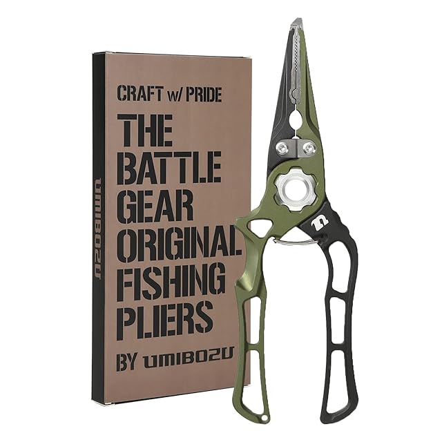Umibozu(ウミボウズ) フィッシングプライヤー 国内 防錆 軽量 強度 針外し ラインカッター (オリーブ)
