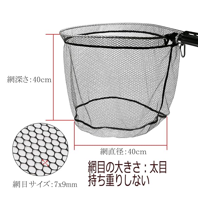 材質:枠:アルミ(折りたたみ式) ネット:PVC(ラバーコーティングネット) 網の深さ:40cm
