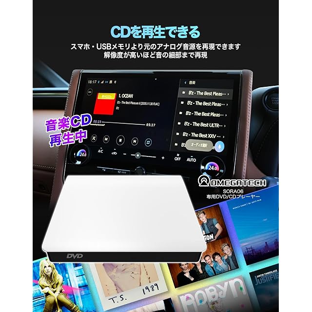 【アルファード/ヴェルファイア40系適用】 OMEGATECH【国内正規品】 車載DVDプレーヤー 車用CDプレーヤー 純正ディスプレイオーディオ カーオーディオプレーヤー プラグアンドプレイ R5.6〜 ALPHARD VELLFIRE 期間限定専用ケース/延長コード付き 2025モデル