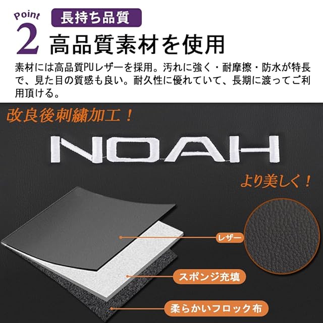 トヨタ ノア 80系 90系 対応。<br><br> ▼POINT.1<br> 「専用設計。」<br> ・実車フィッティングによる ノア 専用商品。<br> ご愛車の型式を確認した上ご注文ください。<br><br> ▼POINT.2<br> 「長持ち品質。」<br> ・素材には高品質PUレザーを採用。<br> 汚れに強く・耐摩擦・防水性、見た目の質感も良い。<br> 清潔やすい素材で、長期に渡ってご利用頂けます。<br><br> ▼POINT.3<br> 「傷や汚れ防止」<br> ・乗り降りで汚しやすいシートバックをしっかりガードします。<br> 汚したり損傷したりすることは避けられ、掃除やお手入れが簡単であります。<br> ▼POINT.4<br> 「高級感アップ。」<br> ・実車フィッティングなデザインで高級感あります。<br> 質感もバッチリで内装に違和感がなく安ぽっさもありません。<br><br> ▼POINT.5<br> 「取付簡単。」<br> ・貼るだけの簡単取付。<br> 裏面にマジックテープ付属していますので、簡単に貼り付けできます。<br><br> ・商品名:キックガード(ノア 80系 90系用)<br> ・セット内容:キックガード*2枚<br> ・素材:PUレザー<br> ・カラー:ブラック。<br> ※本製品は「ノア 80系 90系」専用設計です。ご注文の際は、お車仕様をご確認の上、お間違いのないようお願い致します。