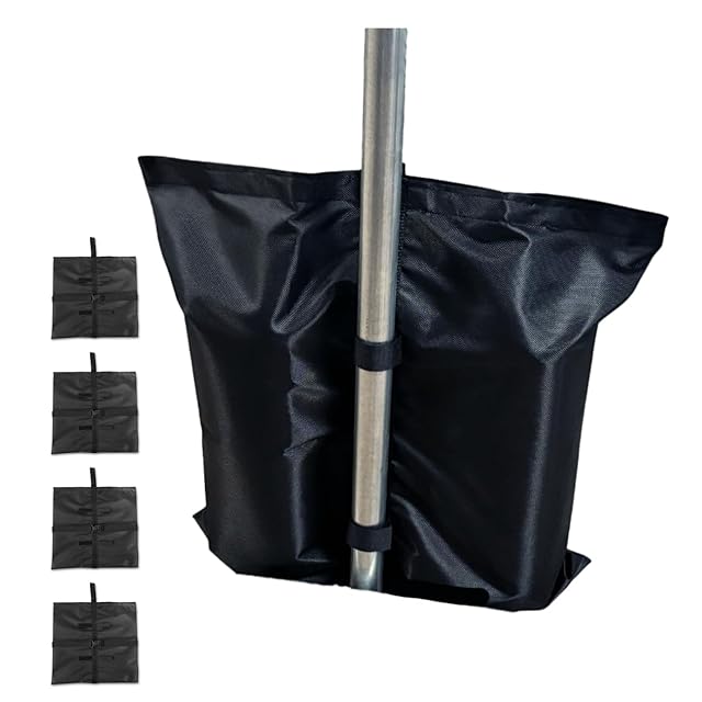 ペグが使えない場所でもしっかり固定できる、4個セットの万能ウエイトバッグです。テントやタープ、温室ハウスなどの設置時に、砂や石、水入りペットボトルなどを詰めて重しとして使えます。1個あたり約4Lの容量があり、砂なら約10kg程度まで対応可能。現地の砂や小石を使って、手軽に安定性を確保できます。 3点固定設計で安全性と使いやすさを両立。中央の仕切りで重さを左右に分散でき、マジックテープとバックルベルトでしっかりポールに固定できるので、ズレにくく安定感があります。 素材には耐水性・耐裂性・耐摩耗性に優れた600Dオックスフォード生地を採用。アウトドアや海辺など過酷な環境でも繰り返し使える高耐久仕様です。使用後はコンパクトに折りたたんで収納可能。持ち手もついているので、移動や設置もスムーズに行えます。 購入から30日以内であれば返品・返金も可能。不良や破損があった際には日本人スタッフが丁寧に対応するため、初めての方でも安心してご利用いただけます。キャンプやイベント、仮設設営をもっと安全・便利にしたい方におすすめのアイテムです。