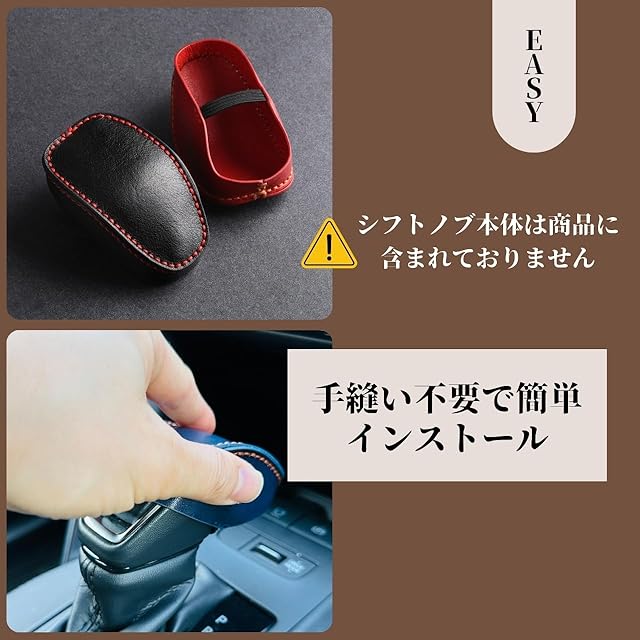 ■装着方法:糸での手縫い作業は不要で、シフトノブに被せるだけで簡単に装着可能です。
