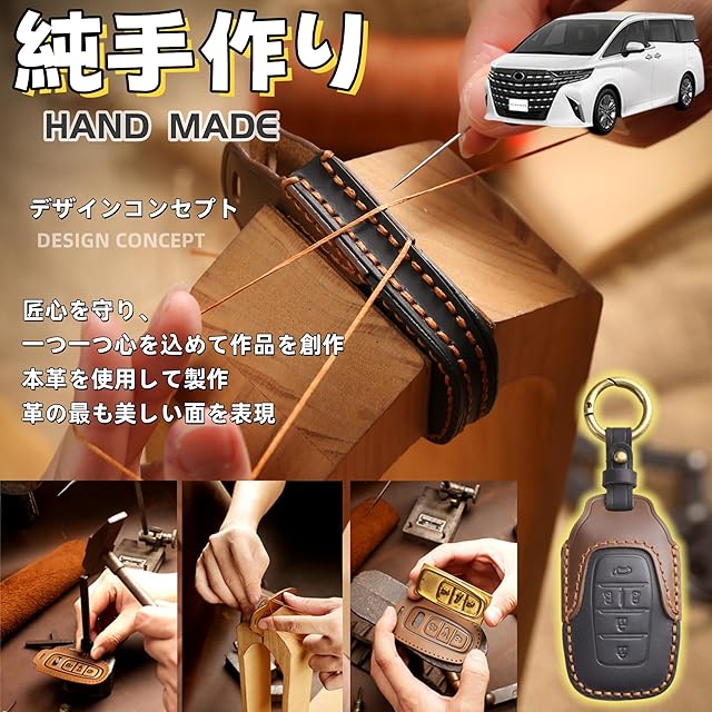 <p> 対応車種</p> <p> アルファード ヴェルファイア 30系 40系 5ボタン/6ボタン全グレード対応,※注文時、お使いの鍵の形状に合うキーケースをご選択ようにしてください。 </p> <p>本革製作</p> <p>厳選された輸入一層目のカーフレザーを使用し、職人の手による丁寧な手縫い仕上げ。プラスチック不使用で、異臭もなく、防湿効果もあります。</p> <p>傷防止</p> <p>本革製のため、表面に傷がついても指で揉むだけで元に戻ります。傷を気にせずお使いいただけます。</p> <p>二重バックル設計</p> <p>専用設計の二重バックルを採用し、鍵の紛失をしっかり防ぎます。</p> <p>ギフトボックス付き</p> <p>同級生、友人、恋人、家族への贈り物に最適なギフトボックス付きです。大切な方への特別なプレゼントにどうぞ。 </p>