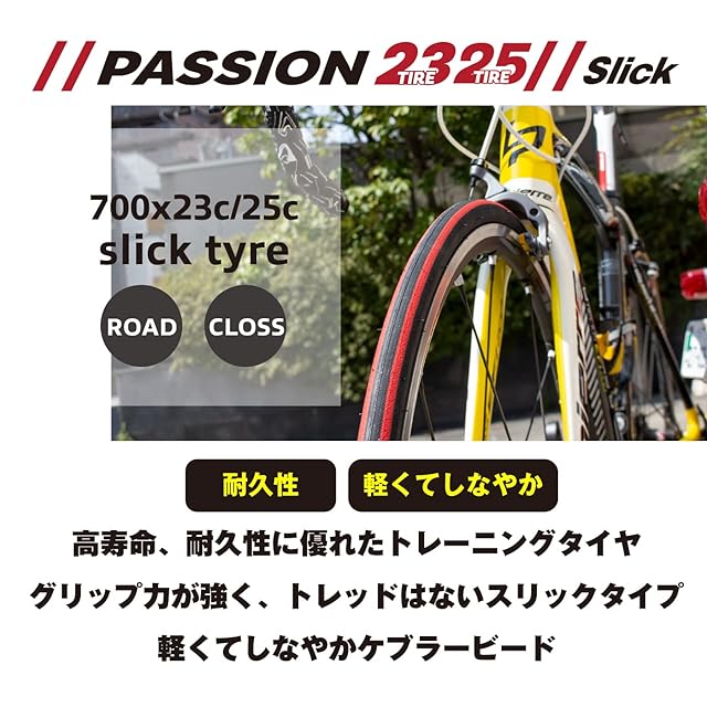 GORIX(ゴリックス) 自転車タイヤ 700c タイヤ ロードバイク クロスバイク (passion 23c) 自転車用タイヤ スリック クリンチャータイヤ 700×23c (ブラック)