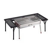 【炉端スタイルも】テーブルの高さは2段階に調節可能なので、ローポジションでグリルを囲めば椅子に座ってゆったり炉端スタイルで楽しむことも出来ます。