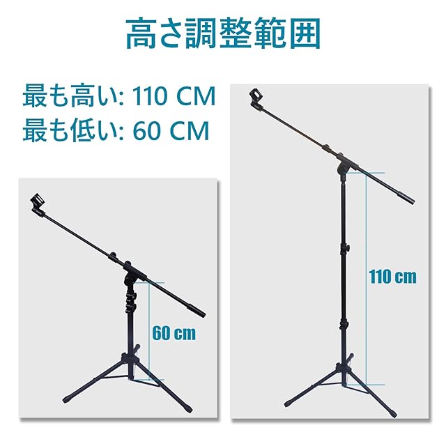 【高さ調節可能な】全体の高さは60から110cmまで調整でき、座っても立っても演奏するのに適しています。水平方向のスタンドをまっすぐに調整すると、最大高さは187cmになります。