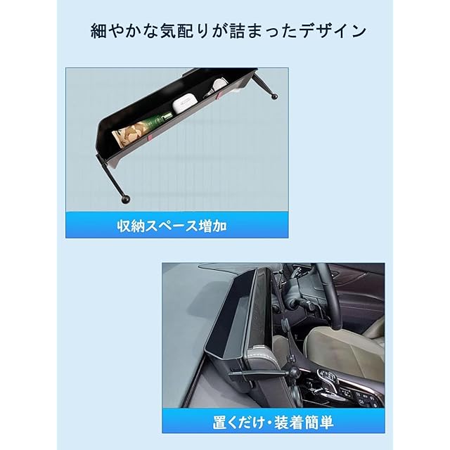 【収納スペース増加・組み立て簡単】:本社は粘着収納ボックスを使用して、収納ボックスには特殊な超強力両面テープが貼り付けられています。強力両面テープを剥がしてアルファ40系ナビの後ろに貼り付けて装着できます。収納ボックスは軽量・コンパクトで高剛性な設計で、収納スペースも増加できます。耐震基部の支持力は主に収納ボックスにあり、吹き出し口からの空気の流れを妨げず、ルーバーに傷防止。アルファ40系の3Dスキャンして得たデータを加えて、何度もチェックと改良を重ね、強い固定力を持って、急ブレーキやデコボコ道で落下の心配はありません。組み立て簡単で、特殊な超強力両面テープを剥がしてナビの後ろに貼り付けるだけです。