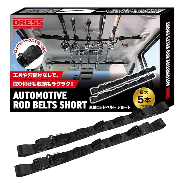 ドレス(DRESS) 車載ロッドベルト ショート 車内用品 ロッドホルダー 釣り 釣り竿 収納 調整可能 クロロプレン