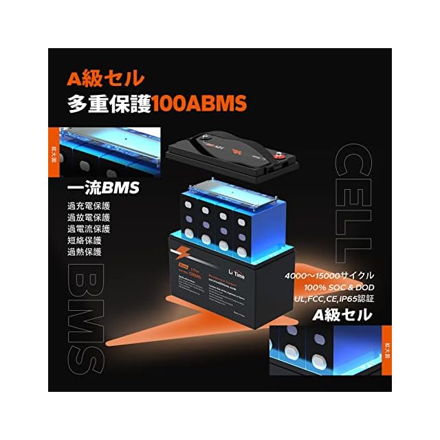 【グレードAリチウムバッテリー&10年長寿命】LiTimeリン酸鉄リチウムイオンバッテリーは、より高いエネルギー密度、より安定した性能とより大きな電力を備えた自動車用グレードのLiFePO4セルで製造されているため、品質が優れています。バッテリー内のセルに対するULテストに基づき、安全性が認められます。100%DODで4000回以上サイクル (80%DODで6000サイクル、60%DODで15000サイクル)と10 年の寿命を実現することで、SLA/AGMバッテリーの200~500サイクルと3 年の寿命よりも、はるかに優れています。