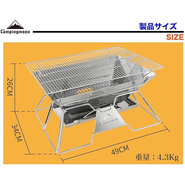 特徴:ラージサイズ。すべての素材がステンレスで、網の上で簡単な料理ができるほど丈夫!