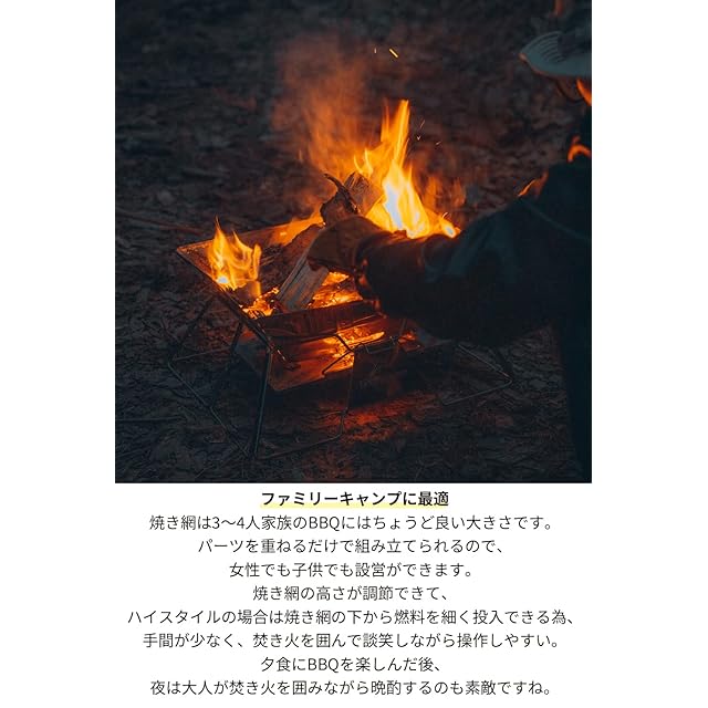 約20秒で完了する組み立ては、工具不要でパーツを繋ぐだけでOK!網の上で簡単な料理ができるほど丈夫なことも魅力のひとつです!
