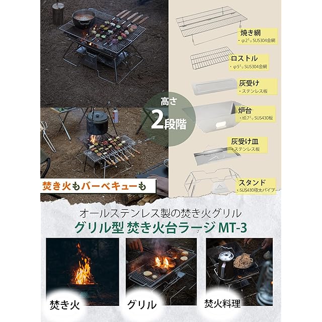 キャンピングムーン(CAMPING MOON) 焚き火グリル 焚き火台 バーベキューコンロ 高さ2段階調整式 ラージ 帆布ケース付き MT-3