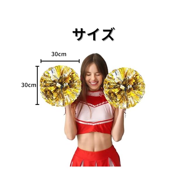 bath&bath ポンポン チア ダンス チアリーダー 10個セット 持ち手付き 30cm×30cm (ゴールド+シルバー) 応援 学校行事 イベント 学校 コスプレ</br></br>(イベントに!応援に)ダンスや運動会、コスプレを盛り上げるポンポンの大容量セットです。軽量で耐久性に優れたPETプラスチック製で、鮮やかな色が雰囲気を造営します。運動会、学園祭、体育祭、イベント、コンサート、ライブなど、幅広い場面で使用可能です。</br>(子どもも大人も)ポンポンのサイズは直径約28cmで、少し小さなタイプなのでお子様にもぴったりです。ゴムでコンパクトにまとめて収納袋に入れて。収納袋付きで、携帯しやすく褪色しにくい素材を使用。使用時には手でほぐして広げてください。</br>(チアダンスに最適)このポンポンセットは、約2cm幅、13cm長のメッキテープで作られており、ライトが映えて美しい。応援時には指先に固定して動作しても問題ありません。競技の士気を鼓舞するために最適なアイテムです。ただし、色移りにはご注意ください。</br>(軽量でコンパクトな応援グッズ)ポンポンは運動会、学園祭、体育祭、コンサート、ライブなど、様々なイベントに適した応援グッズです。軽量で携帯しやすく、耐久性のあるPETプラスチック製。使用開始時には製造中のテープ破片が外れることがありますが、応援にぴったりな一品です。</br>(注意事項)本製品に説明書は付属しておりません。製品の使用に関連するいかなる損害や事故についても当社は一切の責任を負いません。製品のご使用にあたっては、ご自身での注意深い取り扱いをお願いいたします。</br></br>