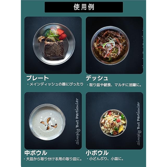【多用途プレート】大小4種類のプレートがあり、メインディッシュから取り皿、スープやサイドディッシュにまで対応。キャンプでの多彩な料理をサポートします。