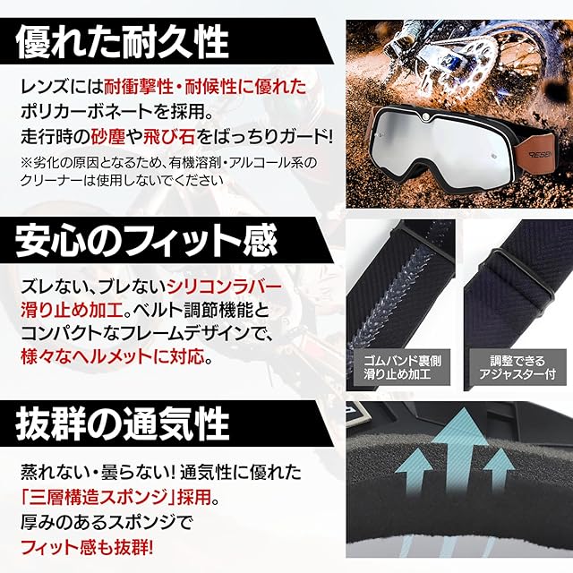 ✅【バイクを楽しみたい方必携】ツーリングにもオフロードにも!あらゆる場面で安全・快適な走行体験をサポートするバイクゴーグルです!