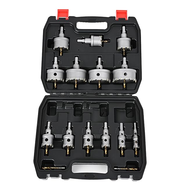 GEARMAN(ギアーマン) 超硬 ホールソー セット 13本 専用ケース 19mm 22mm 25mm 30mm 32mm 35mm 38mm 45mm 50mm 55mm 65mm 70mm 75mm コバルト製センタードリル2本付き