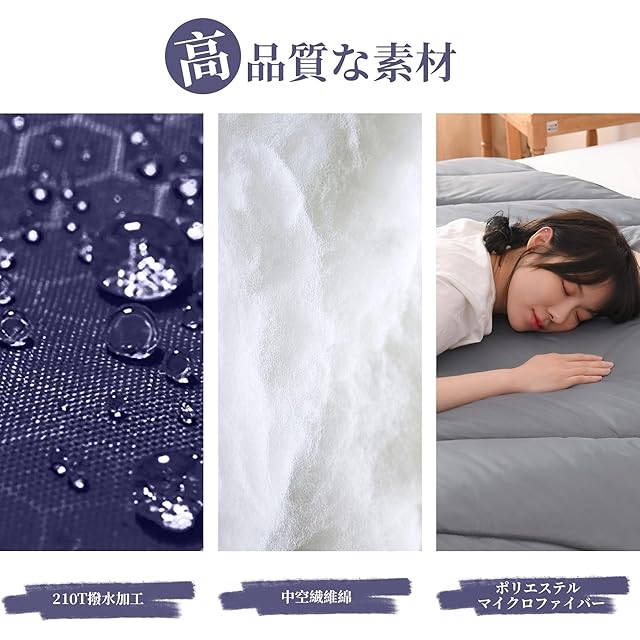 【高品質な素材 】表地は防水性に優れたポリエステル(撥水加工)生地を使用、裏地は肌触りが良いポリエステルマイクロファイバーを採用、中綿は保温性に優れたホローファイバーと中空繊維綿を採用、保温性と速乾性を備えて、アウトドアやキャンプに突然の悪天気にも対応可能です。寝袋は保温性に優れたマイクロファイバー中綿を使用しており、熱を外に逃がさず快適にお休みいただけます。