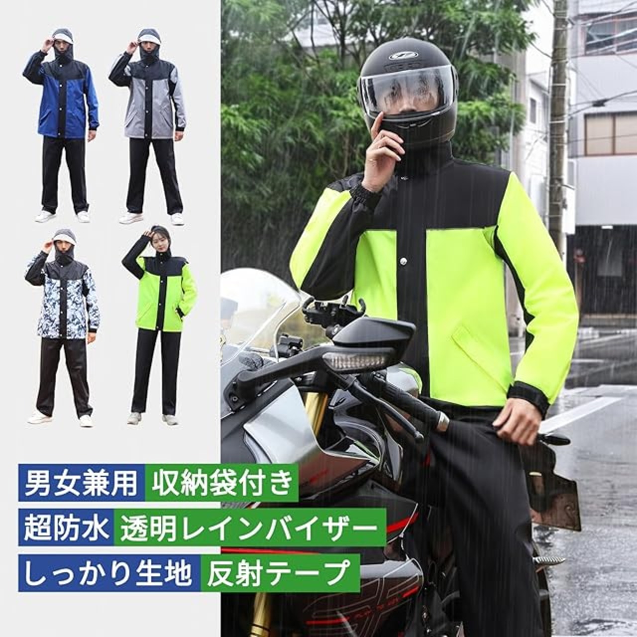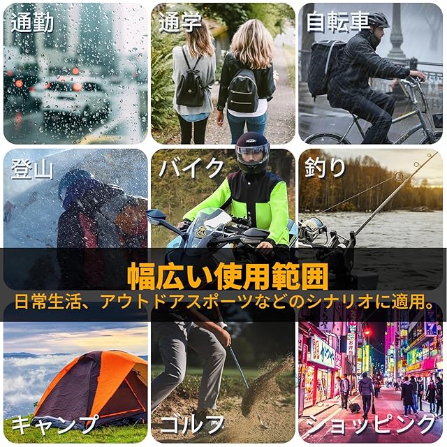 【幅広い用途のレインコート 】バイク用に設計されます。レインブーツと併用してほとんど濡れません。通学、ヘルメット対応、バイク、自転車、通勤、散歩、アウトドア、釣り、作業、ゴルフ、除雪などに最適。