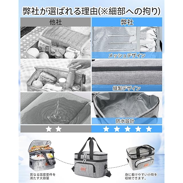 ✅【コンパクトなデザイン】10Lの小容量ながら、使用時のサイズは26×21×19cmで、折り畳んだ際のサイズは28×22×6cmです。持ち運びや収納に便利で、ちょっとした隙間にもすっきり収まります。どんなシーンでも邪魔になりません。厚手の断熱素材を採用し、優れた保冷力を実現しました。バッグの内側は防水ビニールで作られているため、濡れても汚れても簡単に水洗いでき、衛生的です。食べ物や飲み物の新鮮さを長時間保つことができ、ショッピングバッグとしても、車のトランクに入れても便利に使用できます。
