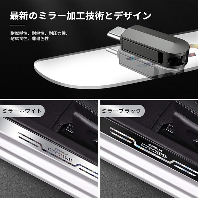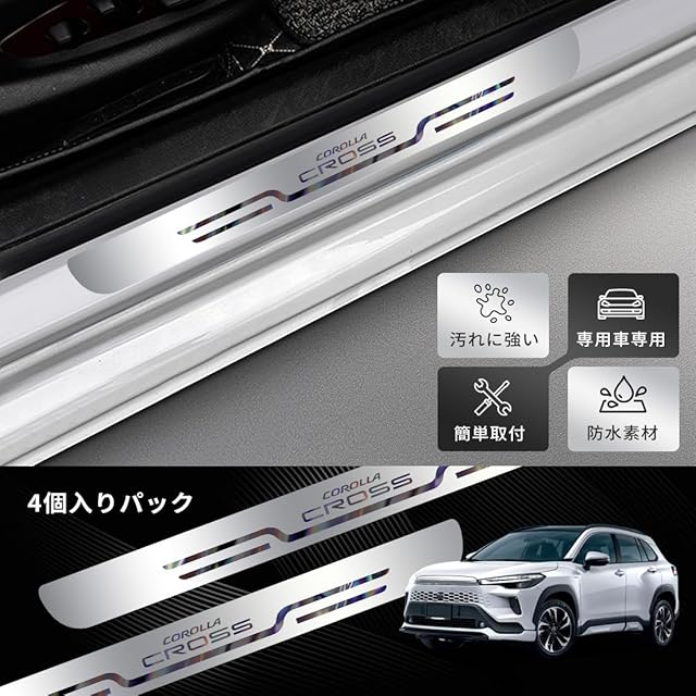 商品名:GOODGOODCAR カローラクロス 2023(令和5)年10月 発売モデル専用 サイドステップガード スカッフプレート カローラクロス2021(令和3)年9月発売モデルも適用 カローラクロス内装パーツ 最新設計 光鏡面デザイン 内装アクセサリー 粘着力強い 水防止 汚れ防止 傷防止 簡単取り付け 4件セット (シルバー)