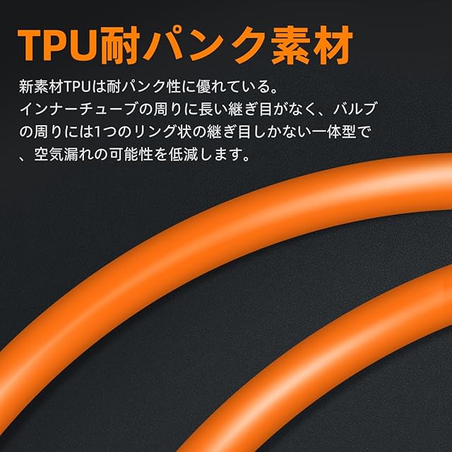 耐摩耗性・耐久性:自転車用インナーチューブは特殊なTPU素材を採用し、従来のゴム製インナーチューブに比べ耐久性も大幅に向上、さらにTUP素材は耐油・耐水性があり、優れた耐荷重性と耐衝撃性を持っています