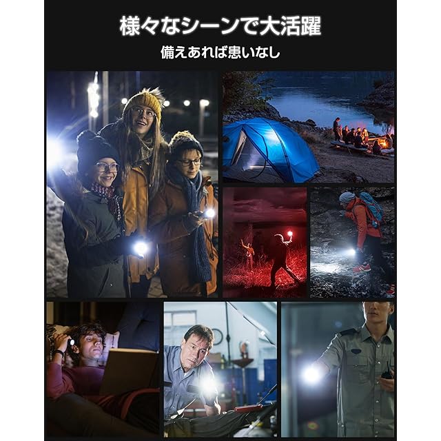 【七つ点灯モード】メインライトは強い明かりで広範囲を照らせる高輝度モード、弱い明かりで周囲を優しく照らせる低輝度モード、災害時の非常信号として役立つ点滅モードなど三つモードが備えてます。側面にあるCOB作業灯はハイモード、ローモード、赤色点灯モード、SOSモードなど四つモードがありますため、強力ライトだけではなく、ランタンや非常灯、常備灯、作業用らいと、サーチライトなどとしてもお使いいただけます。