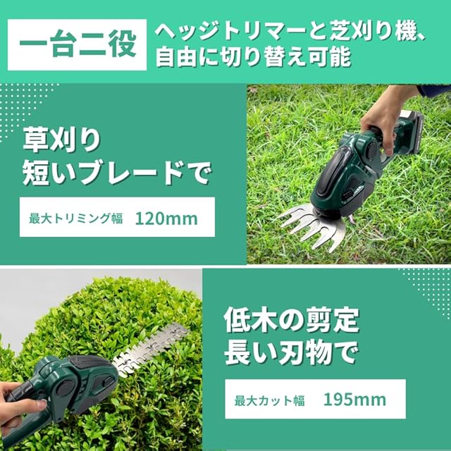 マキタ Makita 対応 コードレス ヘッジトリマー 芝生バリカン 充電式 生垣バリカン 2WAY 14.4V 18V バッテリー 互換 家庭用 工具 ※ 充電器 バッテリー 別売り (Green)