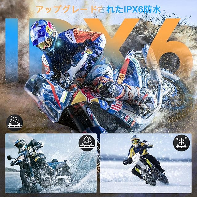 【長時間駆動 & IPX6防水防塵】大容量800mAhバッテリーが、フル充電後最大25時間の連続使用を実現。長旅に最適です。IPX6等級の防水防塵性能により、雨、ほこり、悪天候下でも確実に作動。あらゆる状況下で、自信を持ってライディングをお楽しみください。