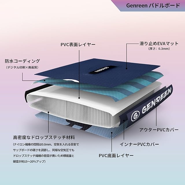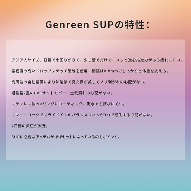 商品名:GENREEN スタンドアップパドルボード SUP パドルボード サップボード supボード インフレータブル サップボード サップ 一式揃い 素材改良 軽量で硬性がよい 小回りがきく疲れにくい 305*76*15cm 積載量150kg (グラデーション-グリーンからパープル)