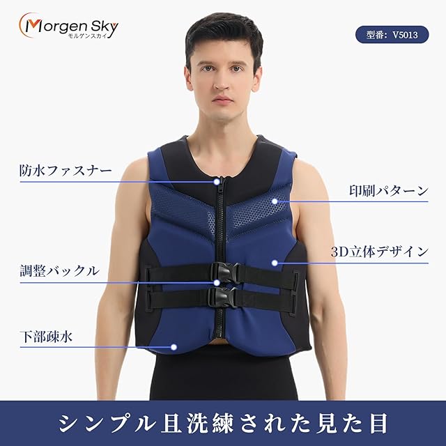 MORGEN SKYの高品質かつ高機能性のライフジャケットはYKKファスナーを採用し、簡単に外れる心配はありません。生地は 400Dオックスフォードクロス素材で施されており、耐久性は高いし、撥水性、防汚性、速乾性にも優れております。浮力は 7.5kg(75N)以上に達し、緊急時にしっかりと命を守ってくれます。 【用途について】スクーバダイビング、スキンダイビング、スノーケリング、サーフィン、ウィンドサーフィン、ヨット、水上 オートバイなどのウォータースポーツ、水中土木、レスキュー・サルベージ、海上建築物上での作業などの職業的な水中・水上 活動に着用できます。 【注意事項】 1、海から上がったら、なるべく早めに洗うのはおすすめです。 2、熱いお湯はNGです。必ず水かぬるま湯で洗ってください。 3、直射日光を避け、細いハンガーを使用しないてください。 4、しっかりと乾燥したら、なるべく早めにもとへ戻ってください。