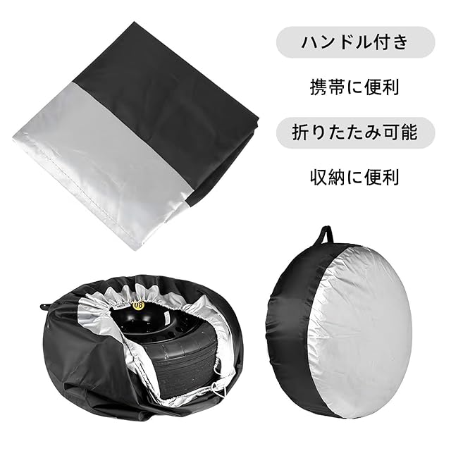 商品名:タイヤカバー タイヤ 収納袋 4本セット Lサイズ タイヤ保管カバー 防水 防塵 紫外線 高耐久性 防紫外線 防塵 劣化防止 210D厚手 取っ手付 屋外 屋内 タイヤ保管